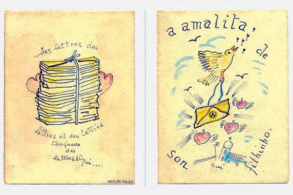 Guignard's life is filled with picturesque and melancholic episodes. In 1932, at the age of 36, he met the music student Amalita Fontenelle, eleven years his junior, at a concert at the Municipal Theater. For five years, Guignard wrote to his platonic love, cards and more cards on practically all commemorative dates. Hand-drawn and contoured cards with love phrases, dedications, and poems. They even exchanged letters, but the cards were never sent. Approximately 120 cards were collected in an album and donated, still alive, to the poet Oswald de Andrade. Today, they form part of the Casa Guignard collection in Ouro Preto and reflect Guignard's timidity in expressing his feelings.