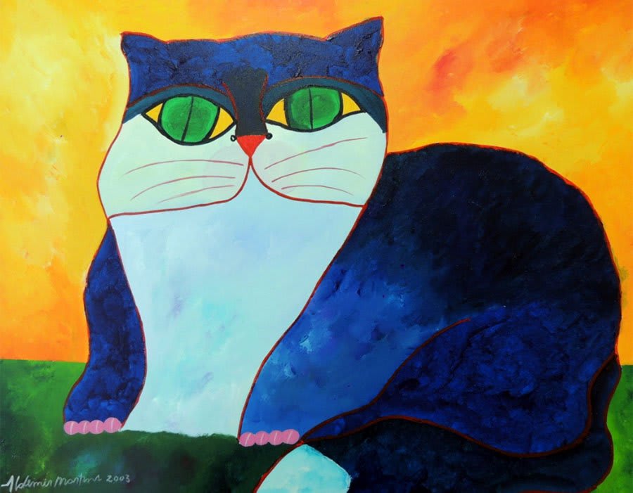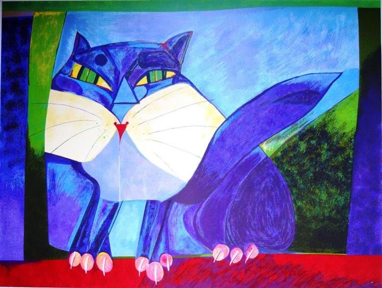 Os gatos surgiram em sua obra, para atender a encomenda de uma senhora que adorava os bichanos.