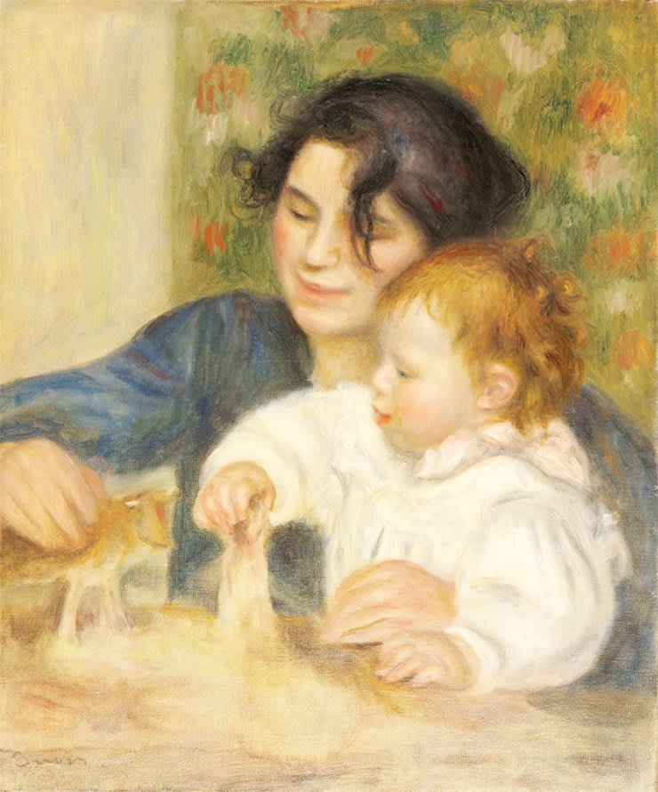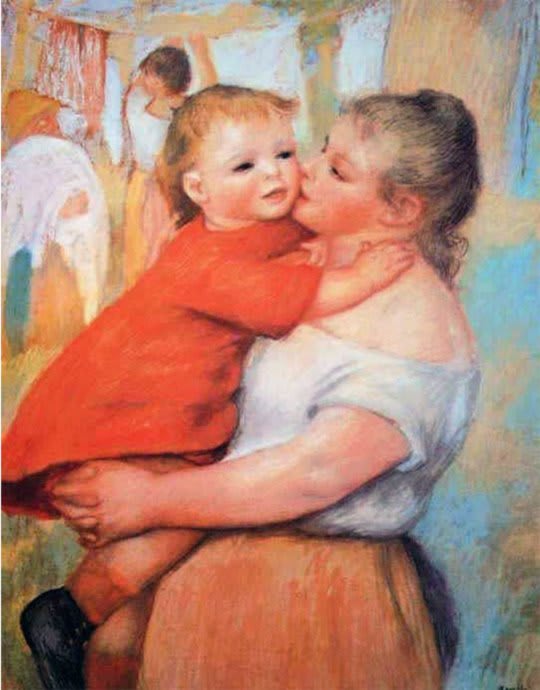 Uma mudança significativa: Entre 1885 e 86, Renoir pintou diferentes versões da maternidade, todas intensas e cheias de encanto. Mãe e filho são o motivo de numerosos quadros, pastéis, desenhos a sanguínea, craiom e bico-de-pena.