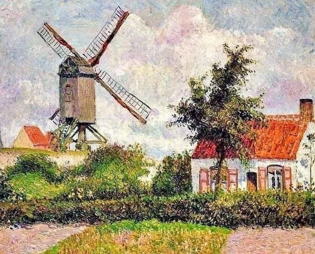Moinho de vento em Knocke - A obra de Pissarro se caracterizou por uma paleta de cores cálidas e pela firmeza com que consegue captar a atmosfera, por meio de um trabalho preciso da luz.