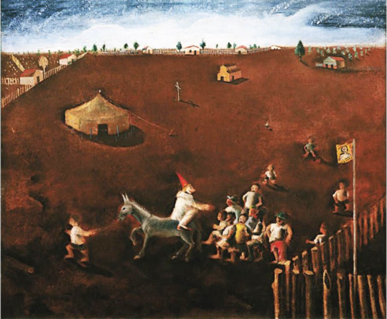 O Circo era para ele como uma de suas riquezas mais preciosas, guardadas nas memórias, eternizadas em suas obras; pintou esse cenário lúdico, brincalhão, delicioso e saudoso algumas vezes, em anos distintos. Estava vivo dentro de seu coração de menino.