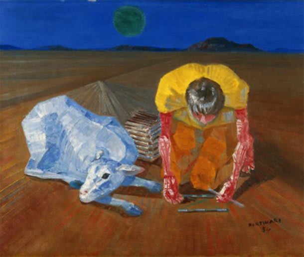 Com a mesma desenvoltura pintou temas sociais, sobretudo ligados ao trabalhador rural, painéis históricos, cenas épicas, lavadeiras, crianças brincando e carneirinhos..