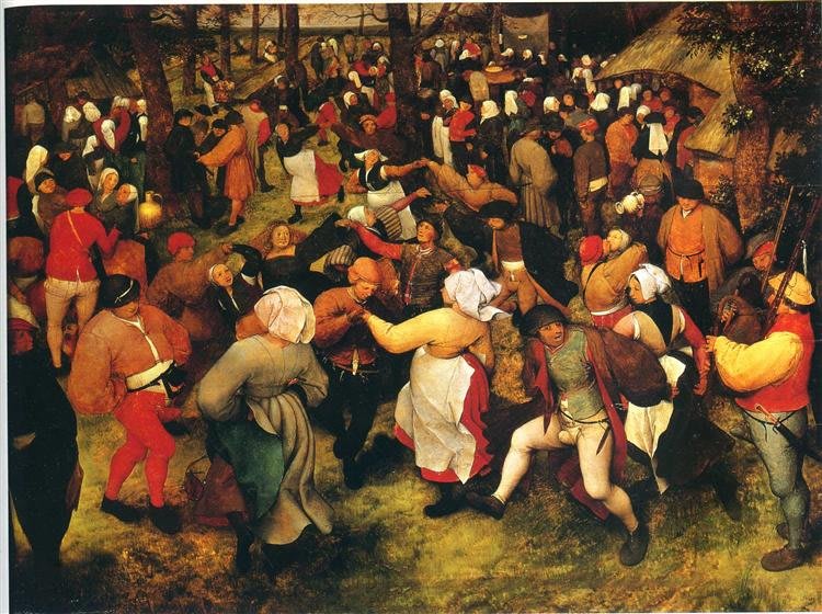 A Dança do Casamento - Bruegel apresenta nessa pintura, os camponeses em cenas de lazer e celebração. O pensamento predominante entre os artistas da Renascença era que apenas a religião, a mitologia e a vida dos grandes homens eram temas adequados para a pintura. A cena de casamento camponês que afirma a vida de Bruegel está repleta de foliões felizes comemorando o evento.