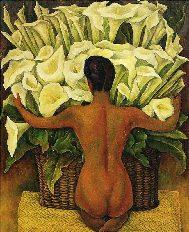 Os copos-de-leite tão presentes na obra de Diego Rivera, eram na verdade pinturas indígenas, pois os nativos eram emoldurados pelos enormes leques de copos-de-leite que ele fazia com um maravilhoso jogo de cores e harmonia.