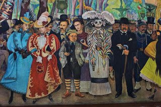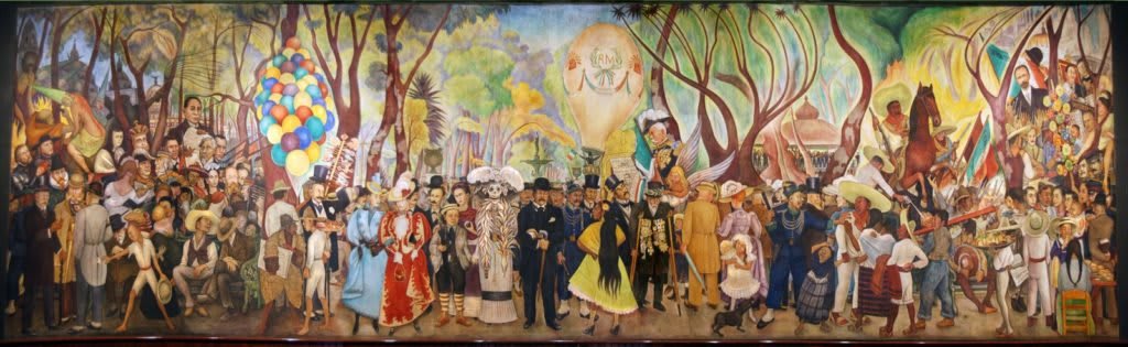 O cenário em que todos esses personagens sonham é a Alameda Central, uma caminhada icônica na Cidade do México que o artista usa para refletir a história de seu país.