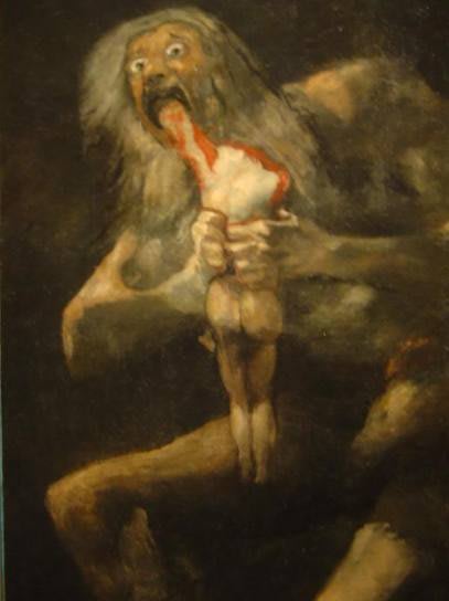 A obra apresenta um tema profundamente assustador, onde Saturno é mostrado devorando um de seus próprios filhos.