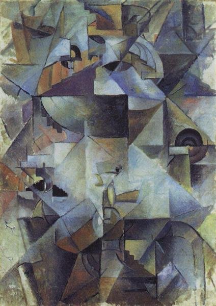 Em 1912 a 1913, Malevich passou a combinar os elementos essenciais do Cubismo Analítico e do Futurismo Italiano, resultando em uma desconstrução geométrica dinâmica das figuras no espaço.