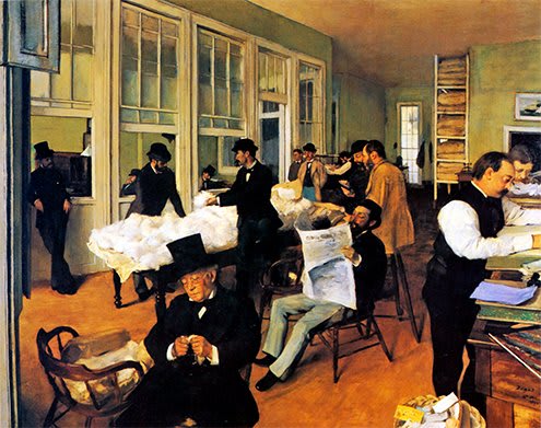 Mercado de Algodão em Nova Orleans: Degas retrata uma atmosfera movimentada neste mercado de algodão.