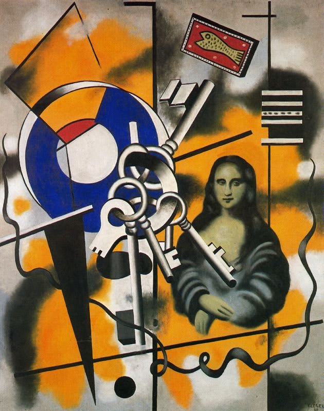 A Mona Lisa nas Chaves - We observe in this painting an influence of Surrealism. The objects depicted do not have support, but simply float in space like in the works of Joan Miró. Léger had made numerous paintings that included keys at the end of the 1920s, thus explaining the artist about this painting: "One day, after drawing a bunch of keys, I asked myself which element was farthest from the bunch of keys and said to myself: 'It's the human face. I went out into the street and saw in a shop window the portrait of Mona Lisa... No contrast has ever been more striking than between this bunch of keys and Mona Lisa." He considered this "risky image" a success and kept it for himself.