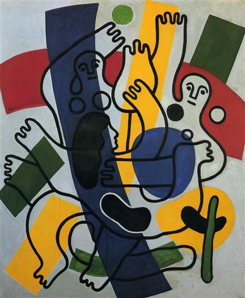 Léger's experience in the war had a profound impact on his art, and he began to focus on the human figure. He said, "I forgot about abstraction around 1912. Because of the cruelty, variety, humor, and absolute perfection of certain men around me, their precise sense of utilitarian reality and their application in the midst of life or death drama... I wanted to paint with all their color and mobility."