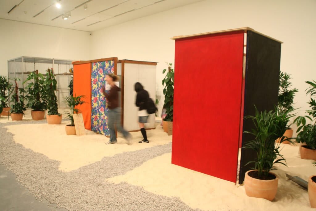 In the mid-1960s, he began a series of interactive installations that he called "Penetrables." These works allowed spectators to enter them and experience a new way of relating to art. One of the most famous works is Tropicália, created in 1967, which invited visitors to walk barefoot on the sand and among tropical plants, creating an immersive experience. The artist explained: The environment created was obviously tropical, like a background of a farm, and the most important thing was the feeling of being back on the ground. This feeling I had previously experienced while walking through the hills, the favela, and even the path of entering, exiting, and bending through the 'quebradas' of Tropicália, reminds me a lot of the walks through the hill.