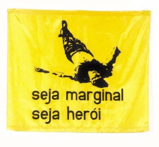 Manoel Moreira, who became friends with Oiticica, was known as Cara de Cavalo. Manoel was persecuted and executed in 1964 with over 50 shots by criminal organizations formed by police. He was one of the main suspects of having assassinated a police officer who was part of that organization. The flag created by the artist presents the image of Cara de Cavalo dead and the phrase Be Marginal, Be a Hero, as a form of protest.
