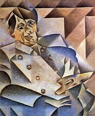 Retrato de Picasso - Esta foi uma homenagem de Gris ao seu mentor, um retrato de seu mentor, o fundador do cubismo. Trabalhando principalmente em tons frios de azul, cinza e marrom, Gris fratura o rosto do modelo em um prisma de planos e formas geométricas que se resolvem em linhas paralelas no fundo.