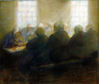 In “Interior de pobres”, the artist possibly relates a ‘funeral ritual’, obscure. In this work, Segall situates the characters in a space that, despite all the circumspection and detachment from the traditional rules of representation, unfolds in planes that lead the observer's gaze to penetrate all the meanders of the scene. In it, we find strong characteristics of expressionism, a movement to which Segall belongs.