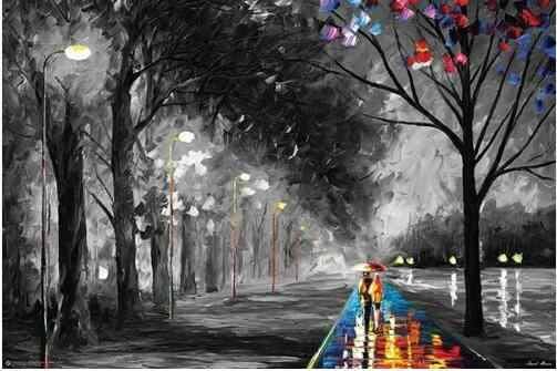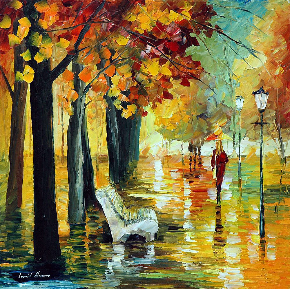 The most used themes by Afremov are urban landscapes, where we can find with more frequency nocturnal scenes with rainy weather.