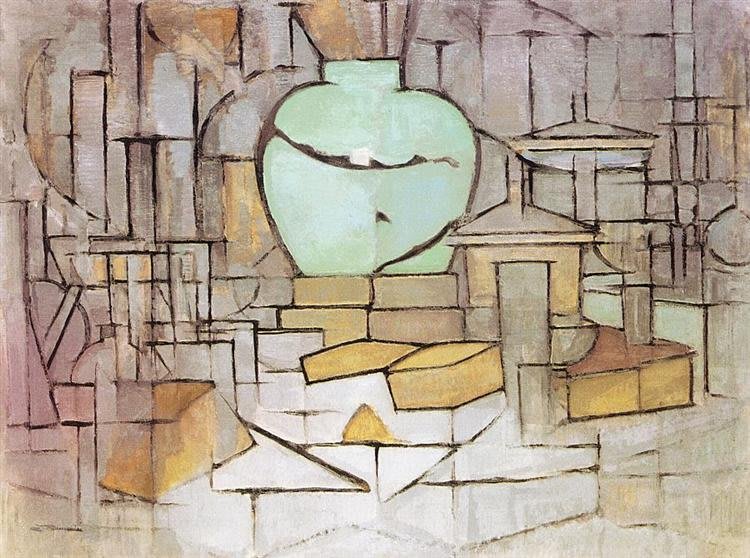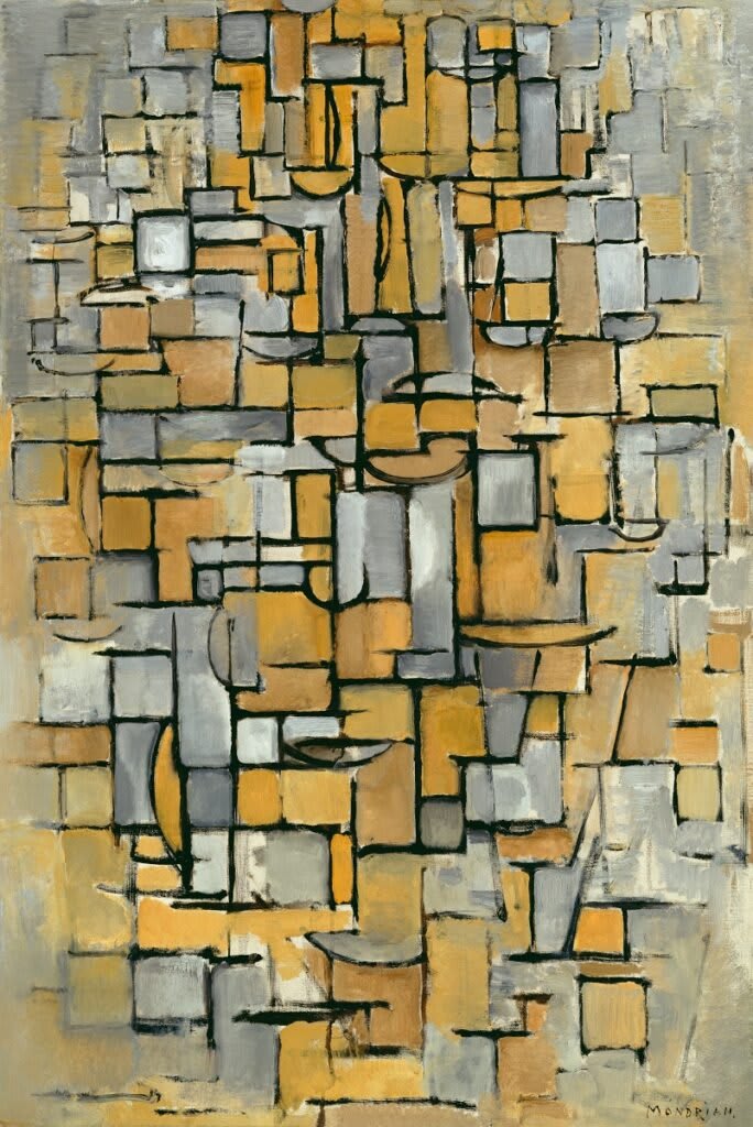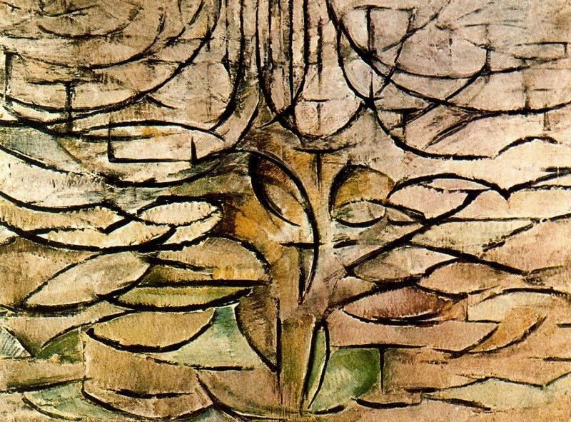 A Árvore Cinza - Durante seus primeiros anos em Paris, Mondrian adotou temporariamente a paleta cubista cinza, como podemos observar nessa pintura. No entanto, ao contrário dos cubistas, ele desejava enfatizar o plano da superfície da pintura, em vez de aludir à profundidade ilusionística tridimensional, como os cubistas retratavam.