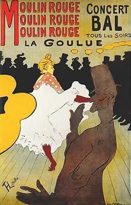 Toulouse-Lautrec was an observer of the cabaret world with a unique perspective; he was born into the French nobility, but was physically disabled, and therefore incorporated a perspective with much knowledge. His unique view of Parisian nightlife resulted in paintings and lithographs of dance halls and cabarets that featured strong contours and planes of color also influenced by the ukiyo-e style.