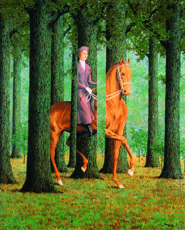 O Jockey Perdido - Após a II guerra, Magritte finalizou sua ruptura com o surrealismo de André Breton, quando passou por um período de experimentação durante o qual criou pinturas berrantes e provocantes que se seguiram antes de retornar ao seu estilo.