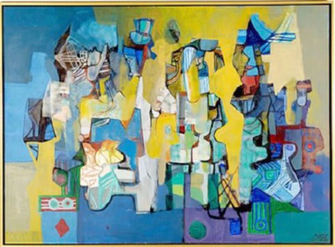 Su pintura abrazó la abstracción, con predilección por azules, verdes y amarillos de una viveza inaudita. ¡Pura explosión cromática!
