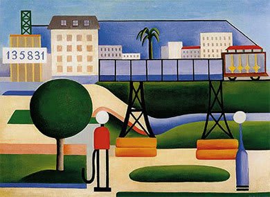 Modernity is the focus of this work, with Tarsila placing both the national landscape – the cheerful and innocent colors of the rural scene that reunites with joy in the historic trip to Minas Gerais – and the transformation of the small town into a metropolis in the foreground.