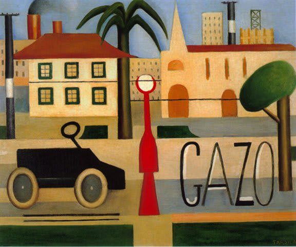 In 'São Paulo 'Gazo', Mario de Andrade wrote: 'Observe São Paulo, it would be vain to prove the eminent plasticity, even violence of this work. But the objects chosen for creation form an intense and nationalist expression of what is the city of São Paulo. There is in Gazo the [sic] fury of the announcement that characterizes the great industrial agglomerations. On the wide avenue of the modern city, with trees that remind us of the richness of our arborization, tram tracks, the extravagant figure of the Ford. And there is the Motano gasoline distributor, as the matrix force of this enormous movement. It is also worth noting that the choice of Ford and not a Cadillac was not made at random. The interior of the wealth flowing, competing for the greatness of the strange capital of São Paulo. The colonial part of the city has not been forgotten. But in this, the chimneys dominate and stand out the skyscraper.'