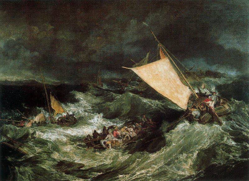 O Naufrágio - Turner era fascinado por temas de naufrágios, incêndios, fenômenos naturais como o sol, chuva, tempestades e nevoeiros.